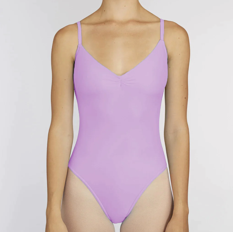 Simple camisole leotard with a flattering deep "pinch" in front and back and high cut leg, creating clean lines for a classic, elegant look perfect for everyday wear.