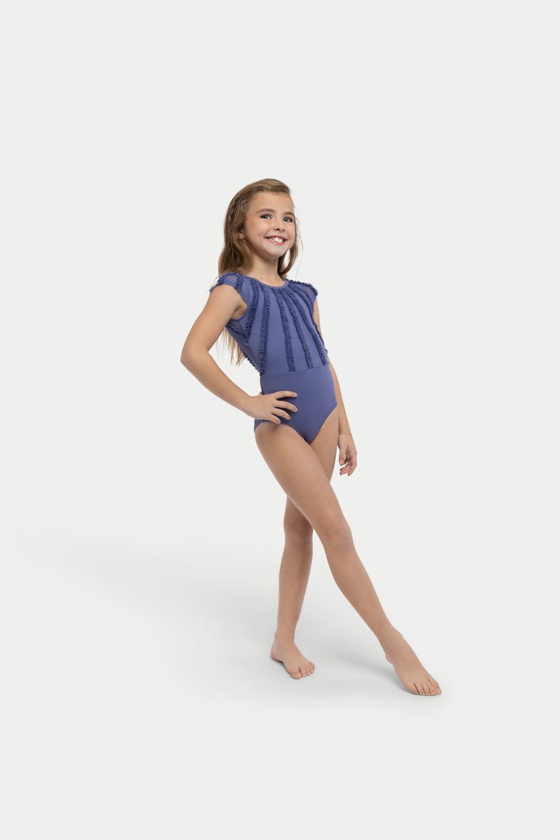 Elegant and playful, the Chloe leotard is a standout piece for young dancers who love a touch of texture. Made with our Supersoft Performance Stretch fabric (75% Nylon, 25% Spandex), this leotard moves with the body while maintaining a luxurious, smooth feel.