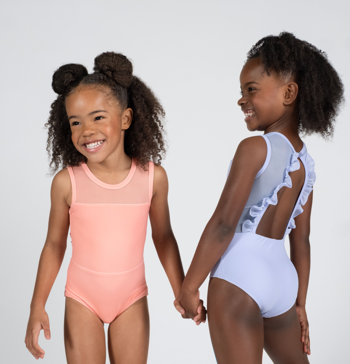 Meet Hazel! Hazel is a sassy leotard featuring mesh neck details, and an open back with the cutest ruffle border. Hazel is available in three different colors; Purple, Coral and Black. Trust us, you need them all! Made out of super soft performance stretch fabric.