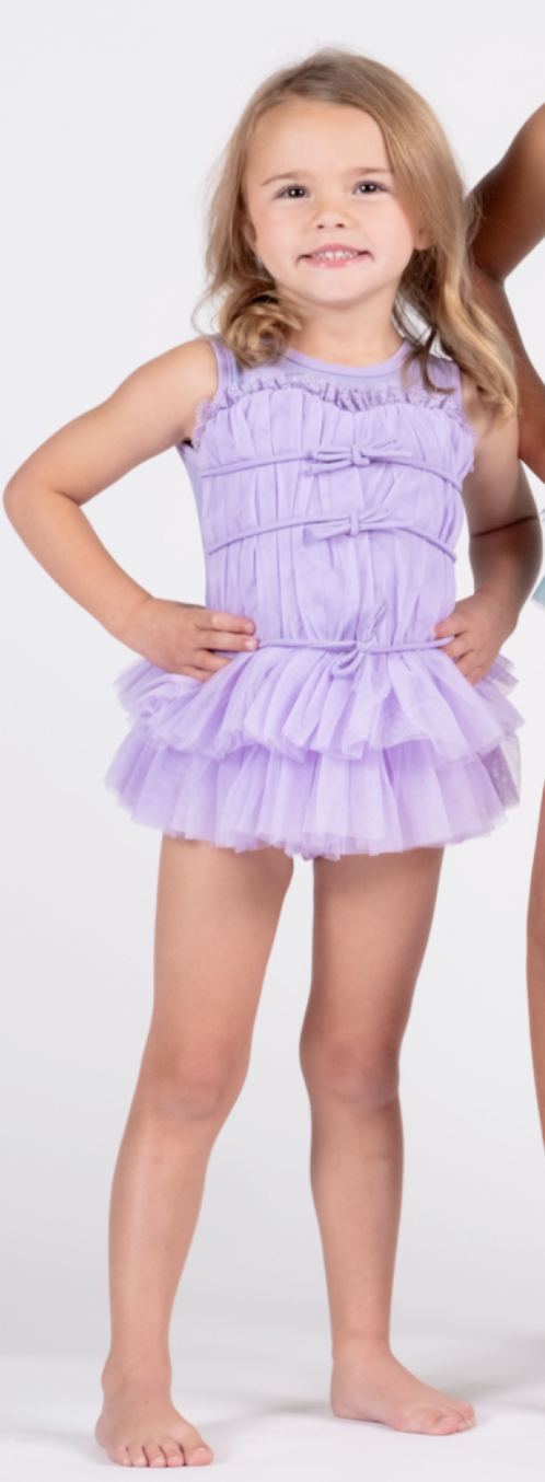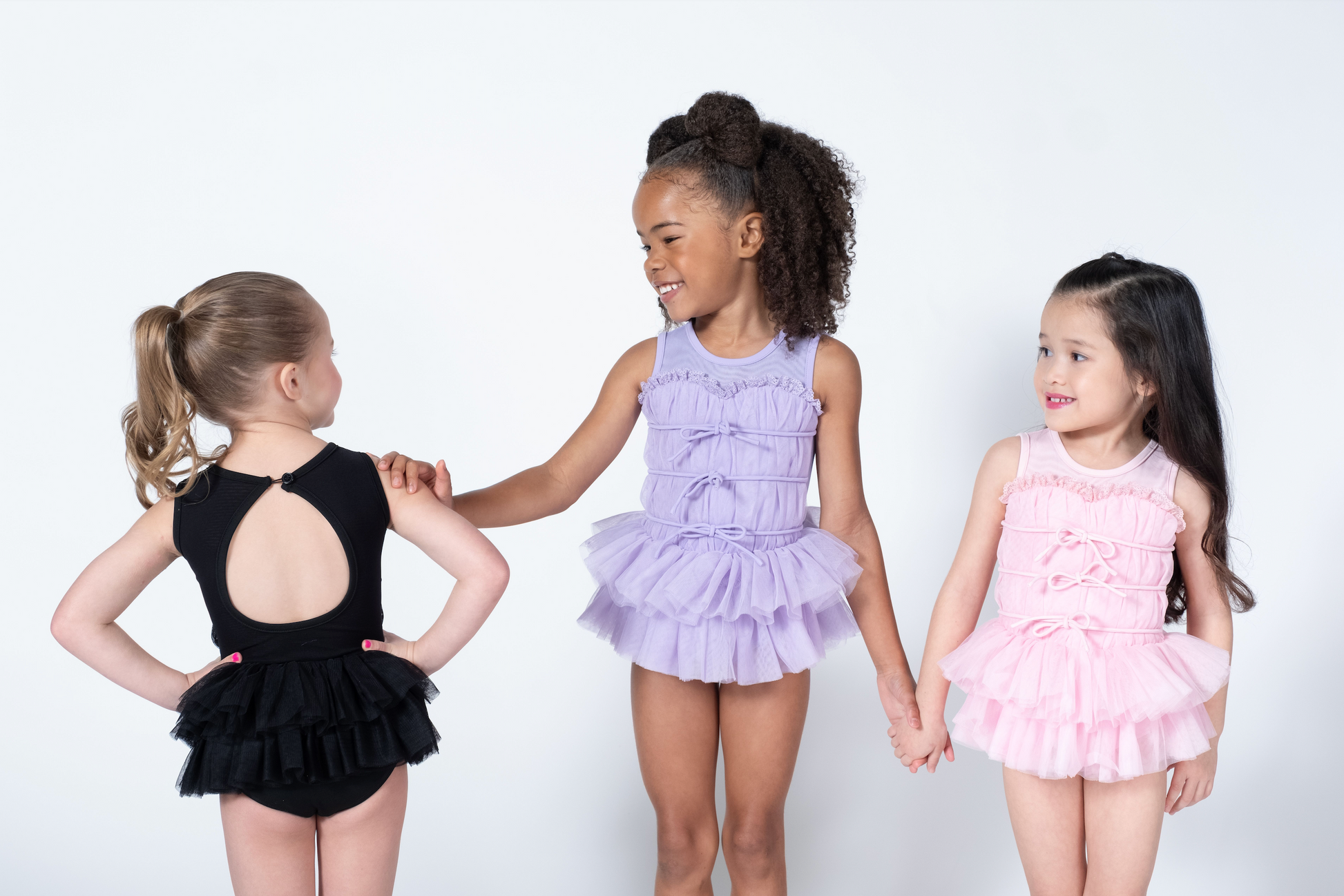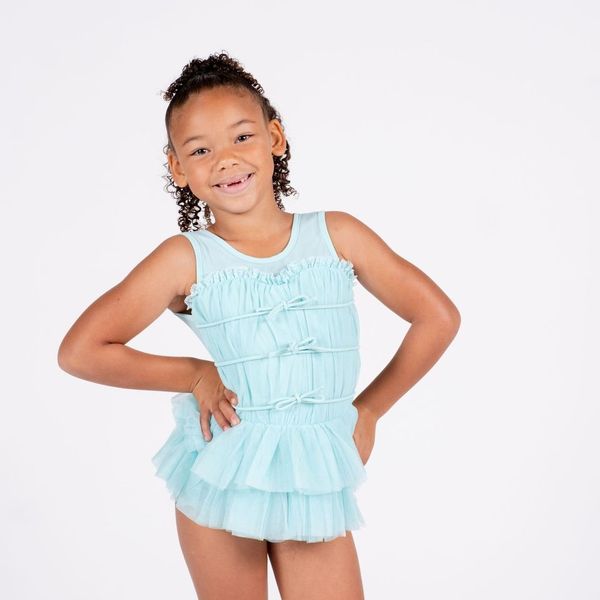 Meet Layla! The cutest ruched-style leotard with attached skirt. Sweet bows line the front and a keyhole opening in the back make Layla your dancer's new favorite leotard! The details on this leotard are truly unmatched, great for dance classes & comfy enough to play dress-up around the housed! Made out of super soft performance stretch fabric and available in several colors; one for each day of the week!